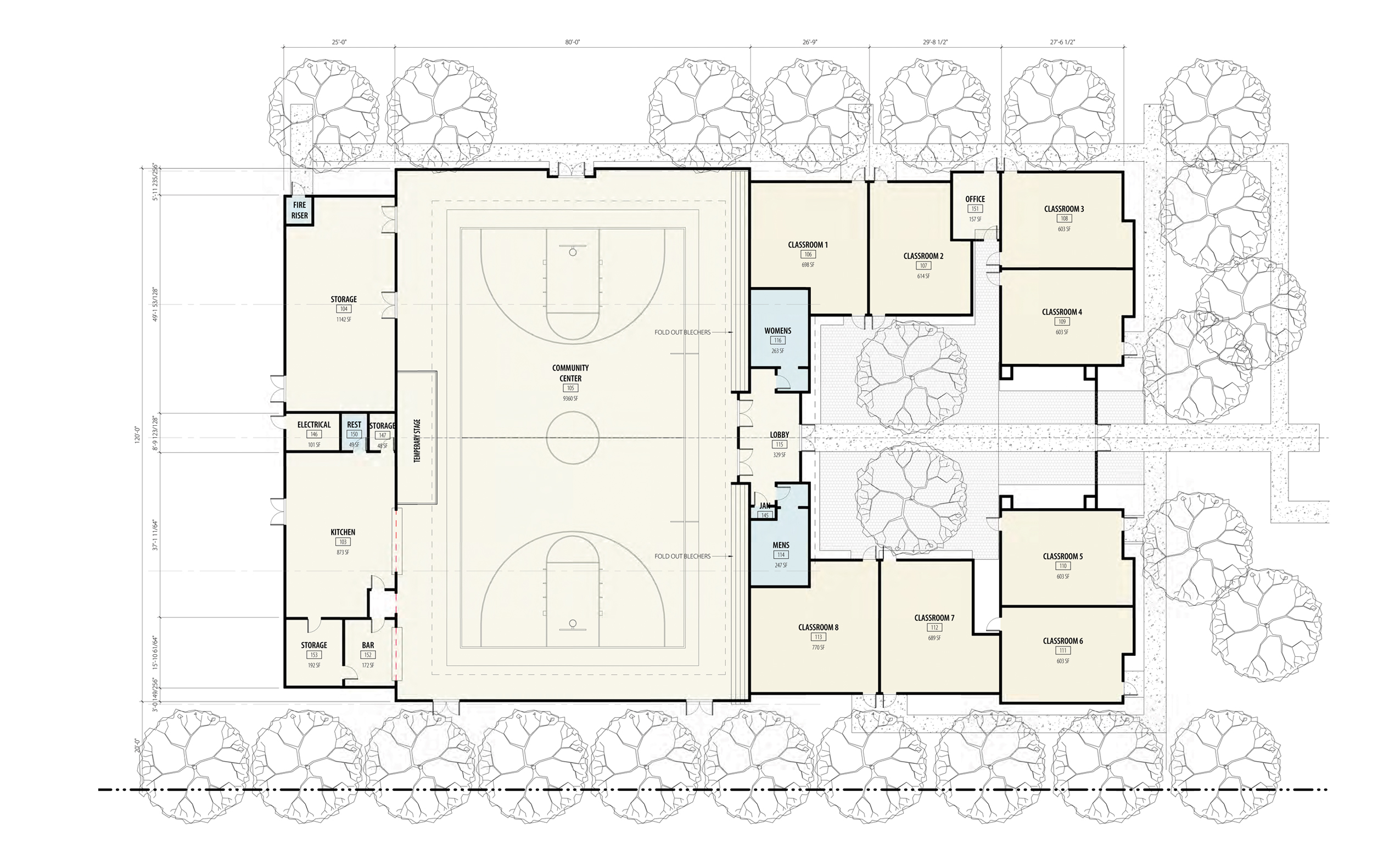 The culmination of many years of planning and construction, St. Edwards Community Center represents the realization of a complete campus for church-goers and the diocese. The church has a large following of parishioners, who prioritized limited resources for decades to create their campus. The expansion plan was inspired by historic Spanish missions dotting the length of California. Gabled roof forms are gathered about a central courtyard featuring a portal entry, a modern reinterpretation of mission plazas, and arched entryways. The campus began with a simple prefabricated metal building worship space and has been lovingly adorned throughout the years. For far too long, church-goers made do without adequate facilities, but can now enjoy a fully functioning gymnasium, recreation area, outdoor gathering space, and catechism classrooms.